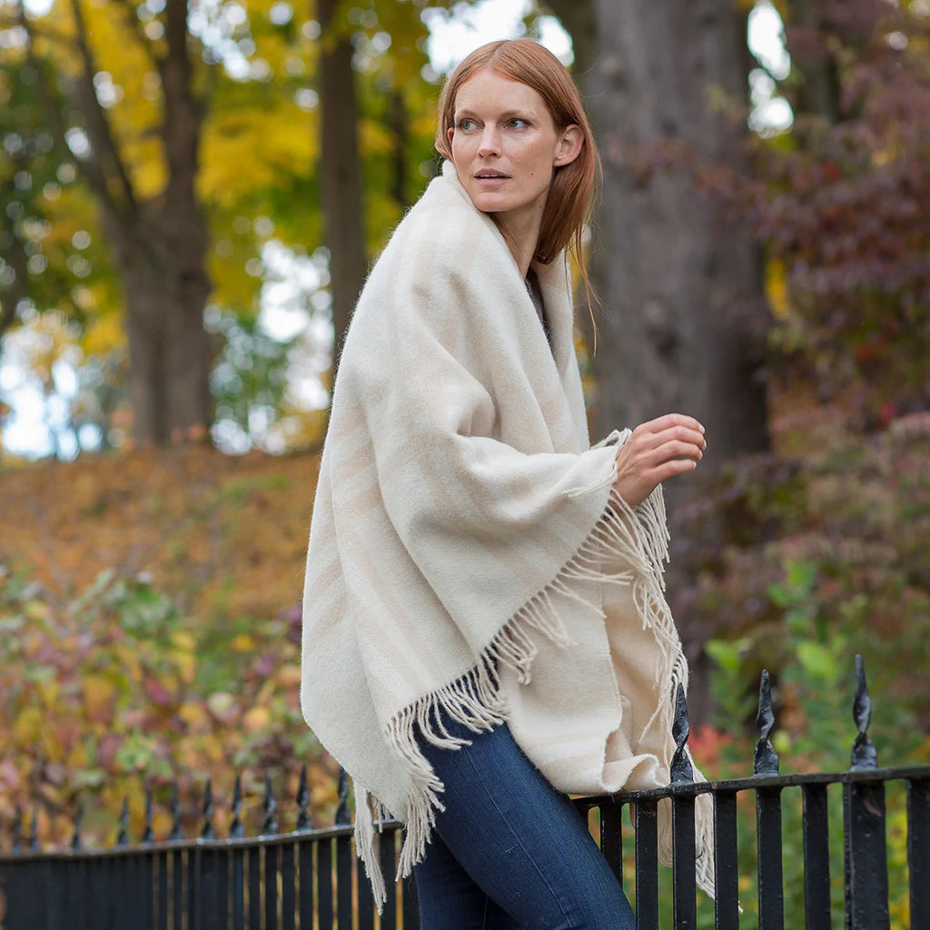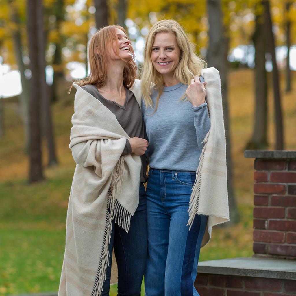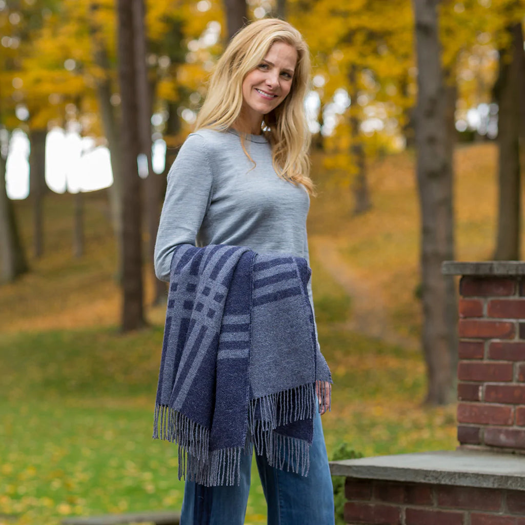 This is alicia adams alpaca’s amazing Canyon Wrap. This great accessory is the ultimate choice when it comes to upgrading any outfit. If you're looking to ease your carbon footprint, this is an eco-conscious choice since it is meticulously crafted of alpaca and recycled yarns with beautiful tassel trim that's sure to last for years and become a timeless classic in your wardrobe.