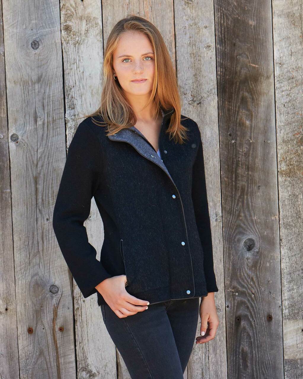 Our easy fitting Gia Jacket suits all body types. This versatile zip up alpaca jacket works well as a layering piece, on its own, or dressed up. It highlights casual Fridays and weekday looks with ease. A unique alpaca blend provides a luxurious feel and weight to the garment.