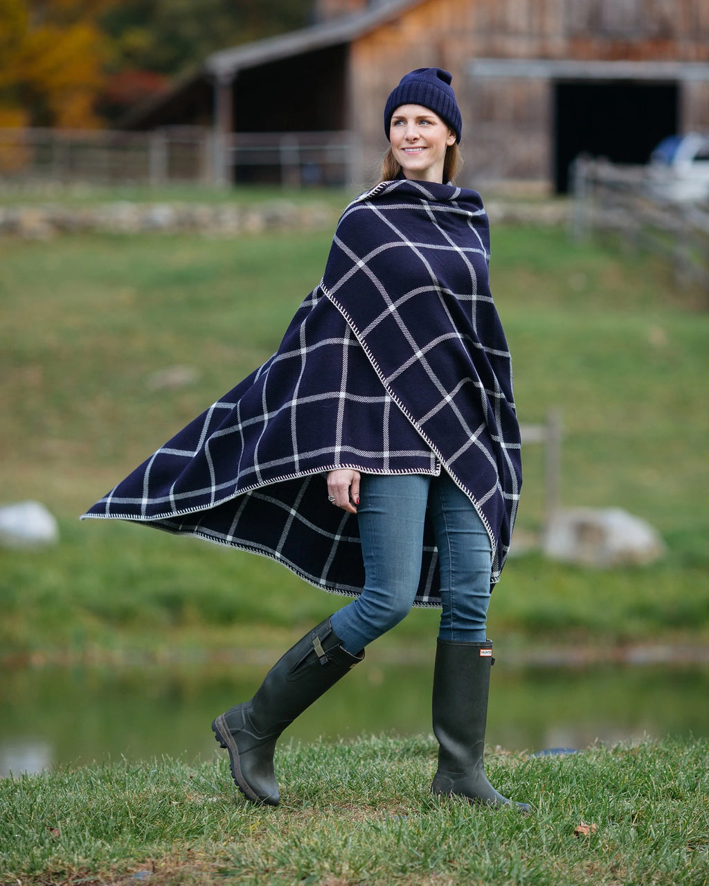 The alicia adams alpaca Graydon Cape features a classic plaid patter with a whipstitch trim. With 35+ gorgeous color combinations to choose from, this 100% baby alpaca cape is the perfect gift, or will quickly become a staple in your wardrobe!