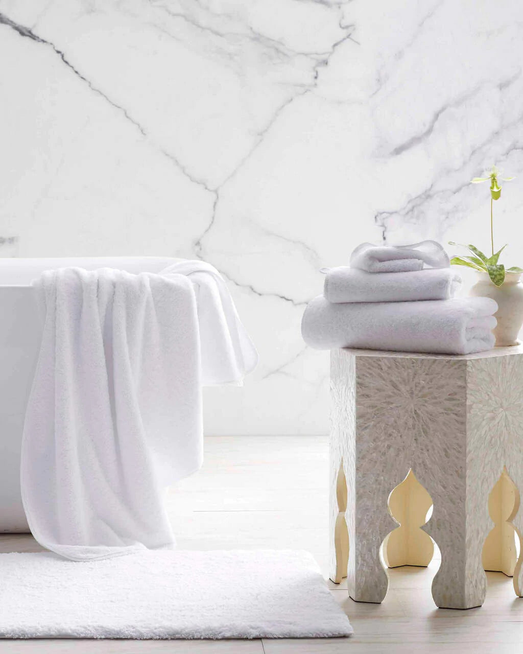 Pamper your feet with these supremely soft, super-plush 100% Egyptian cotton pile bath rugs. Indulgence Rugs are tufted with superior yarns, finished with a bias edge and piece-dyed for colorfastness. A skid resistant finish on back reduces slippage on wet floors. Matching Bath Towels available.