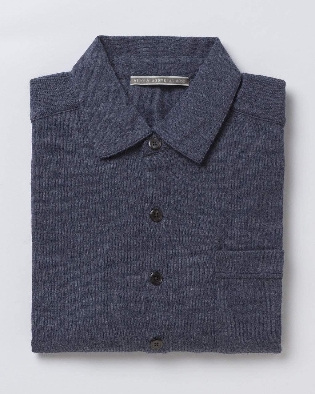 Our Knit Shirt suits all types of individuals. This casual, yet stunning baby alpaca blouse is an easy-to-wear button up sweater that also works well as a layering piece, on its own, or dressed up. It features a single chest pocket and tonal buttons.