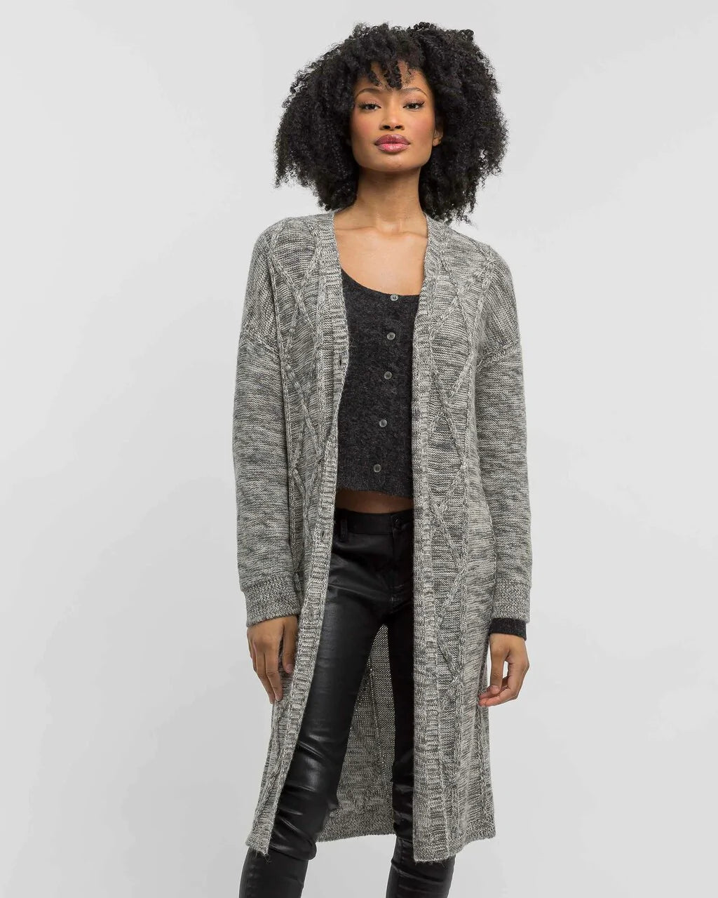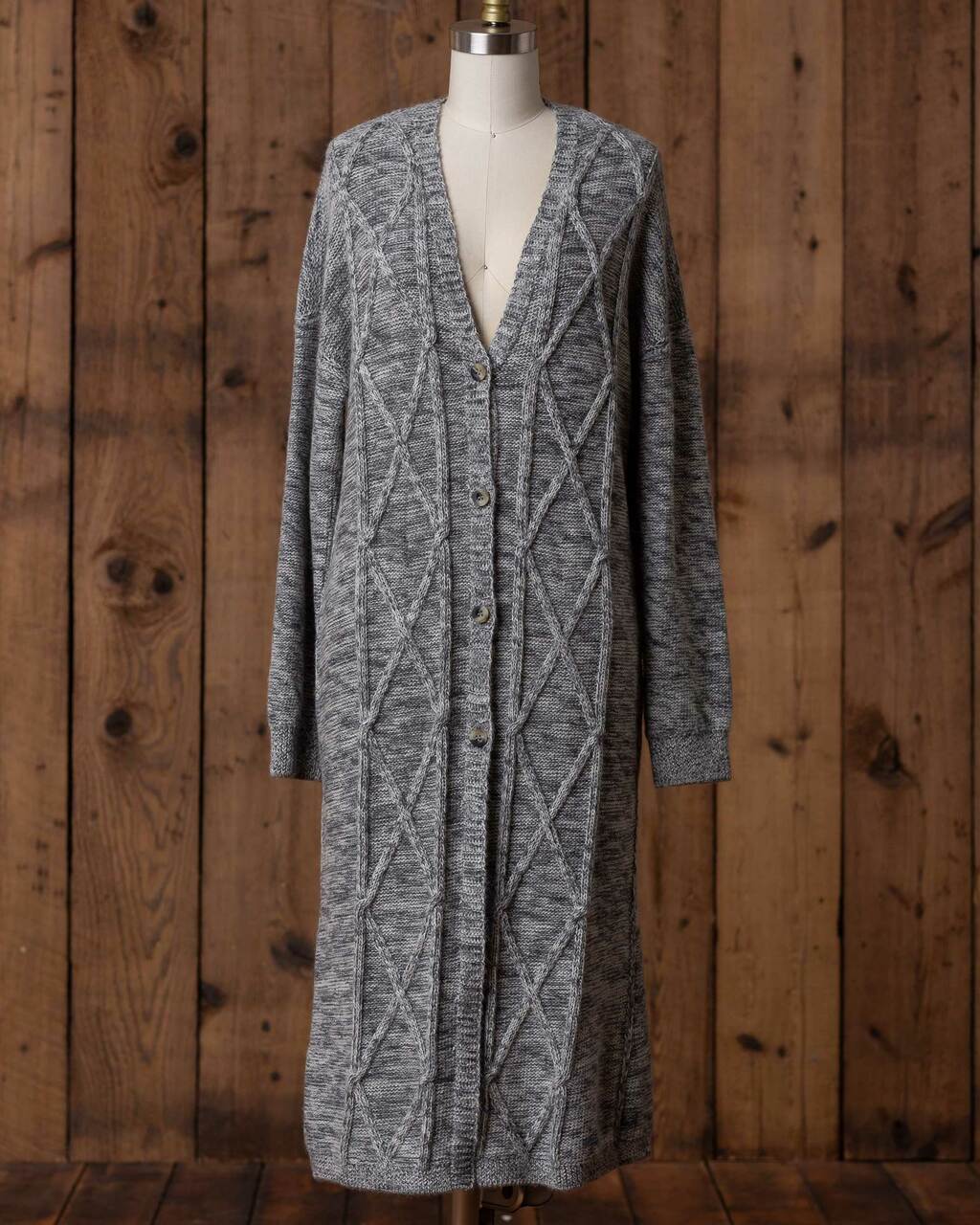 The Alicia Adams Alpaca Madison Cardigan features intricate cable knit details. This luxurious baby alpaca sweater's casual vibe makes it the perfect addition to any travel plans or work from home ensemble.