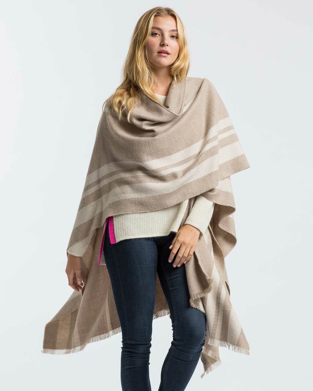 Our Mazing Cape is a favorite! The pattern features a southwestern chic feel, this gorgeous piece will be the envy of all who see it. This 100% baby alpaca cape is available in four stunning color combinations with three colors in each variation.