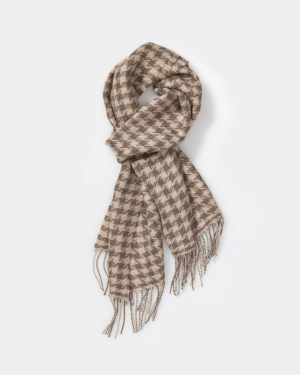 A classic pattern in a lightweight scarf, our baby alpaca Houndstooth Scarf is perfect for anyone looking to add a touch of style to his or her look. Its generous proportions make it extra cozy for any man or woman.