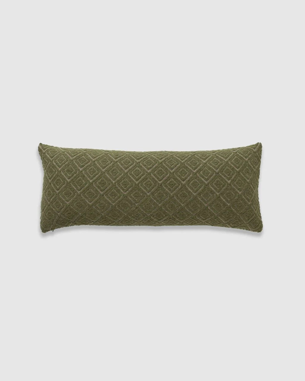 Featuring a world-inspired Ikat design, our Mystic Long Lumbar Pillow adds an element of global inspiration to any home. This decorative baby alpaca lumbar pillow, accents formal or casual rooms. Knitted diamond pattern using thicker yarns to create dimension. This eco-friendly item is crafted of partially recycled materials.