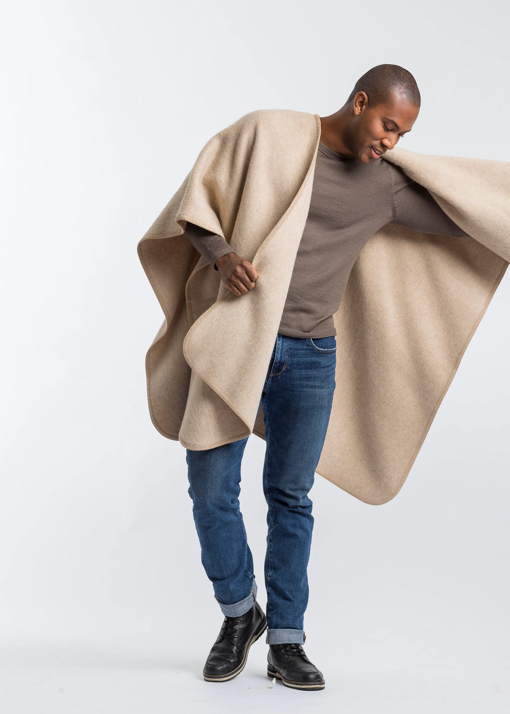 Rustic meets refined in the Alicia Adams Alpaca Olsen Cape. This iconic, eco-conscious alpaca blend cape is exceptionally versatile and travels beautifully from Casual Fridays to effortless weekend style. It's weightier than our many of our alpaca capes and incorporates a more rustic vibe and texture to the touch. This stunning, fair-trade made alpaca cape incorporates a beautiful whipstitch trim that truly sets this product apart with a look you can't find anywhere else. Ease your carbon footprint with a sustainably sourced Olsen Blanket Cape that keeps you warm and cozy.