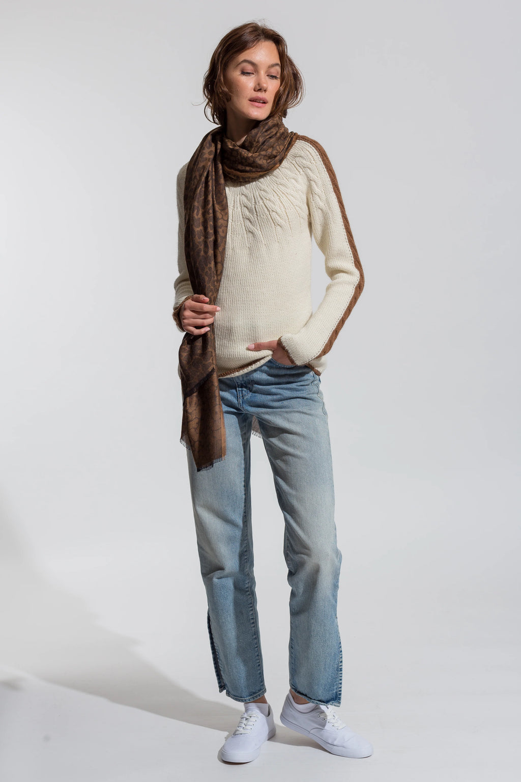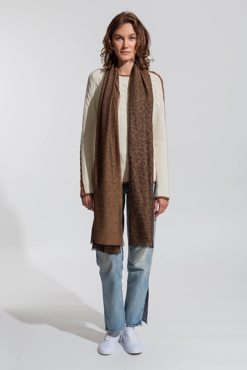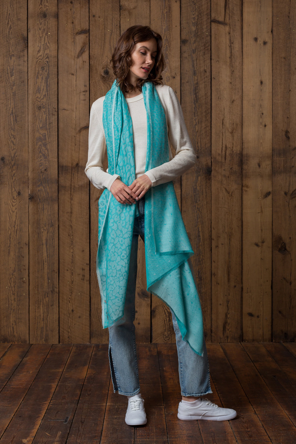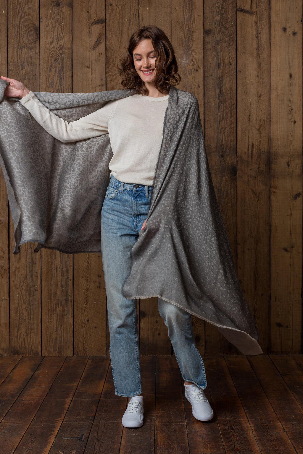 Our new Pinto Scarf is patterned with a stunning degradé leopard. Made from our favorite baby alpaca / silk blend, you’ll find that its weight suits coastal climates as well as evenings all year round. This lightweight alpaca wrap makes a divine gift for any occasion and flair to any outfit.