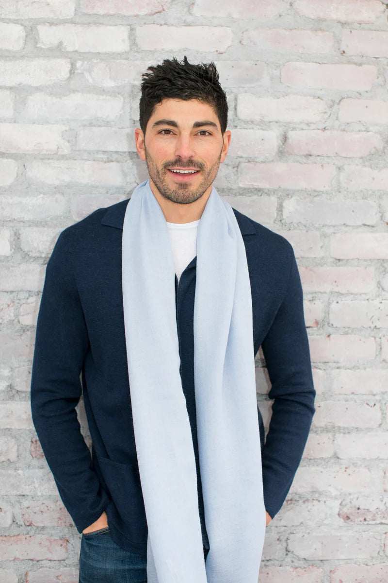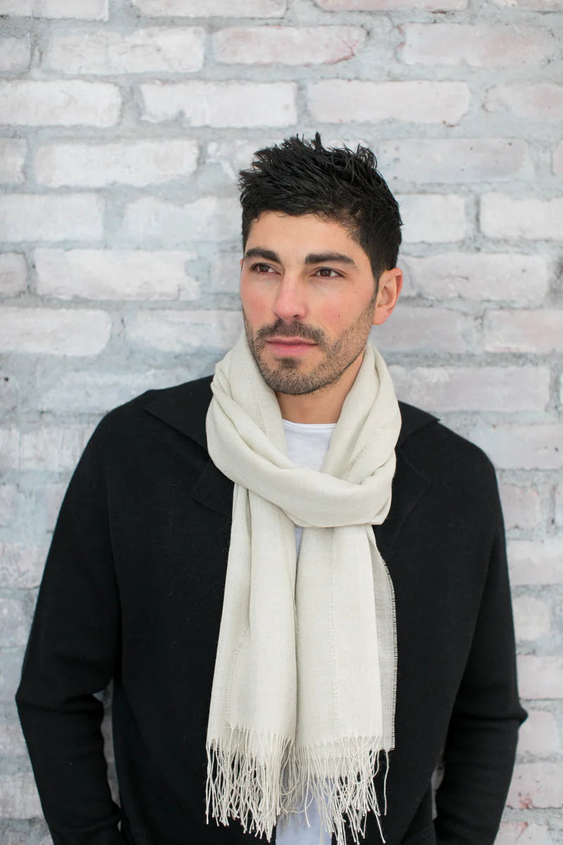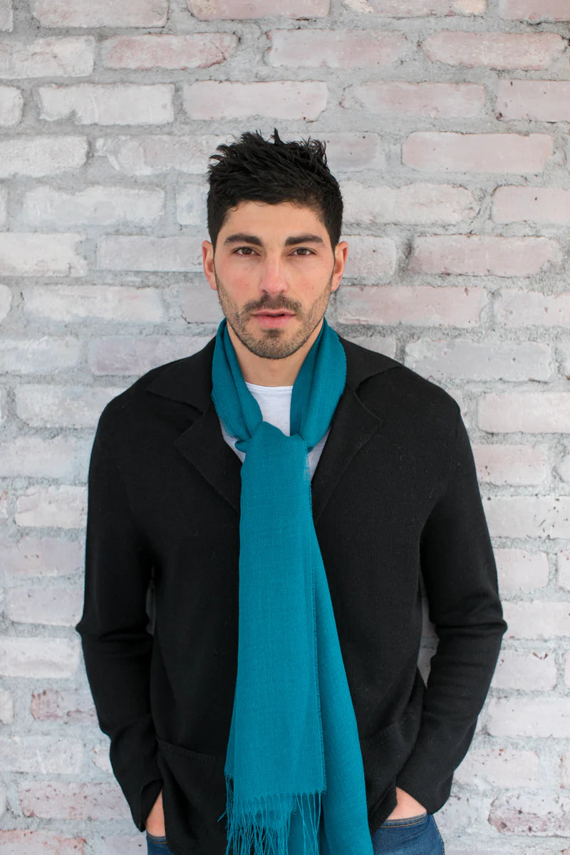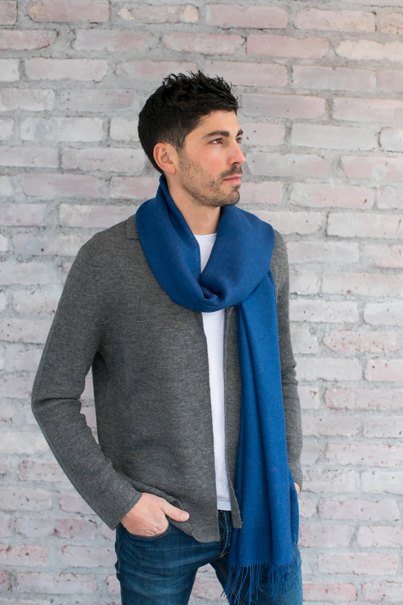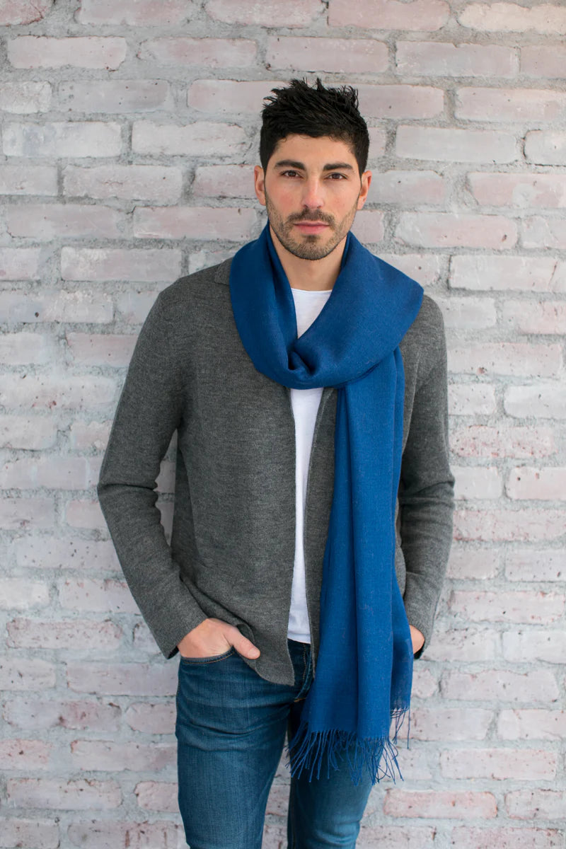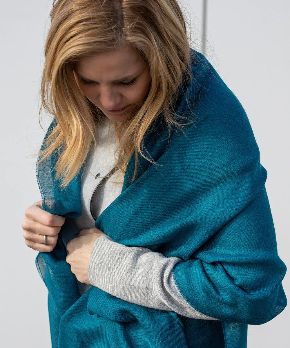 The Portofino Wrap functions as a wrap, a scarf, a stole, or even a shawl. The feather-weight baby alpaca and silk blend makes it the perfect accessory for warmer months. Wear one or two - it's a versatile look and a great way to layer in transitional weather. Since it's airy and light, it folds away easily (or ties onto your bag), so you're never without something to throw over your shoulders, should you catch a chill.