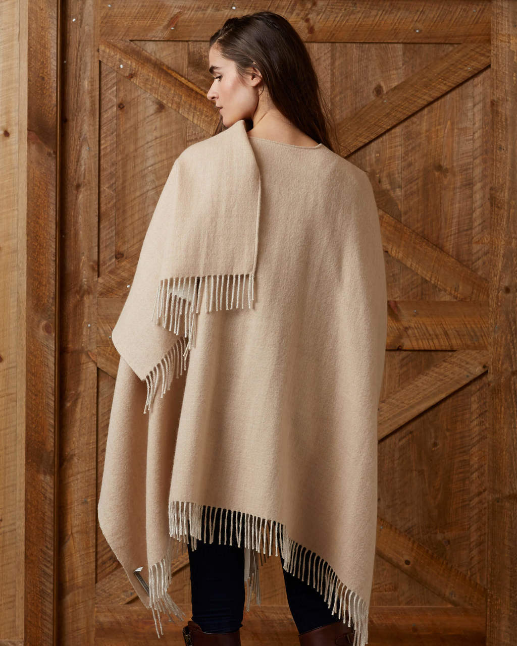 The Alicia adams alpaca Reversible Cape brings versatility and infinite outfit possibilities. With two solid colors, one on each side, this 100% baby alpaca cape lets the individual choose which to show off and which to save for the next wear.