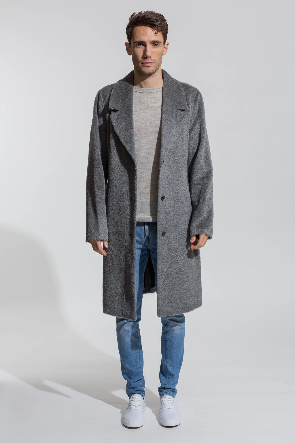 The cut of our Samir Coat coat starts slim on the top and through the arms. This versatile baby alpaca coat for women celebrates all body types due with its slimming nature - available in white, light grey, and black melange. Features dual inseam pockets at front bodice for added utility.